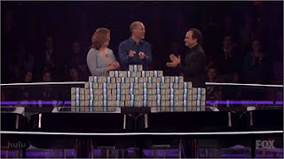 On a side note, I think the ominous music cues being used for the moments before the opening of the incorrect answer drop zones subdues the suspense a little because you can tell when the drop zones will open by timing when the music stops, as opposed to the U.K. version, where dead silence fills the air in the studio during the moments before the opening of the drop zones, not knowing when the drop zones will open. Overall, Million Dollar Money Drop still has the contestants pressured by the clock and the contestants, home audience and studio audience hanging on to the edge of their seats, but the U.K. version is still more challenging. The U.S. version is also more emotional than the U.K. version, like the one contestant who was on his knees in tears on the premiere episode because they lost $800,000 in cash on an incorrect answer, but also less challenging because of the use of the lifeline and the increased time limits on some questions. But, I guess the reason why the U.S. version added the use of the “Quick Change” is because the U.S. version wants to be more successful in giving away more money than on the U.K. version. This is a pretty good show to watch (for a FOX game show), and make sure you get a chance to see an episode this week!