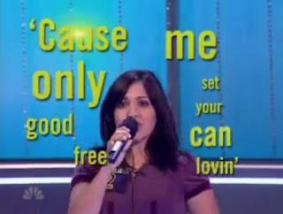| A contestant playing "Scrambled Lyrics" on the NBC Version of The Singing Bee. Courtesy NBC. |