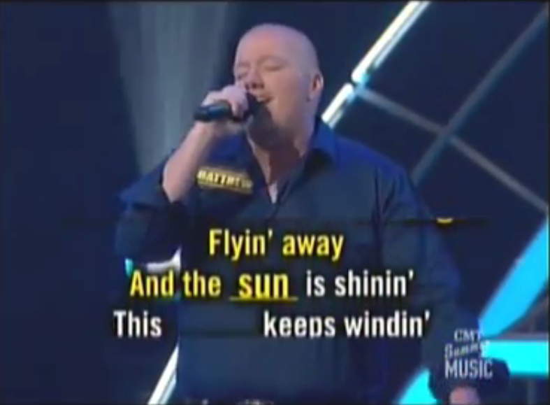 | A contestant singing in the "Karaoke Challenge" mini-game. Courtesy CMT. |