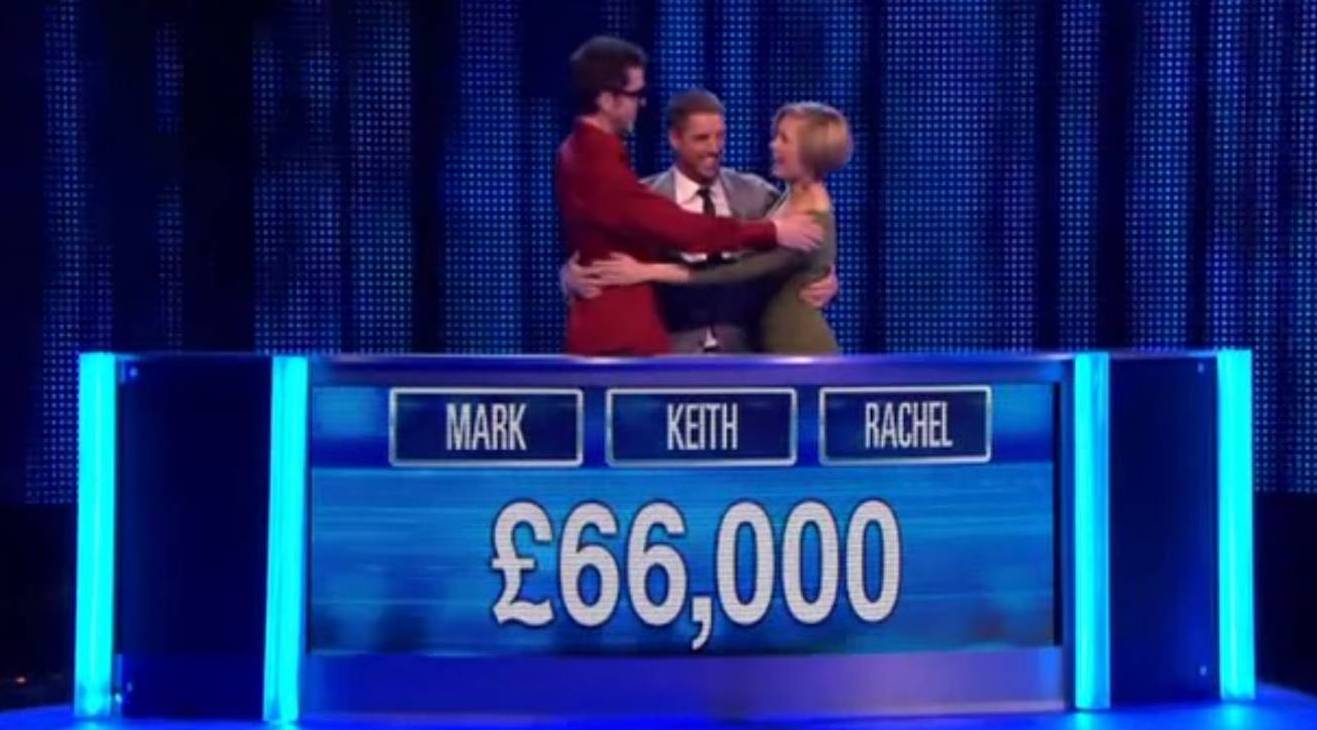 celebs playing against Anne Hegerty. Rachel Riley, Keith Duffy, Mark Charnock defeated