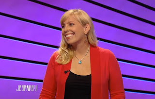 Stephanie Jass, a college professor from Milan, MI, made her way to the Jeopardy! record books as she became the longest-reigning woman champion and perhaps the first contestant ever to jokingly call Alex Trebek "the Devil" upon him goading her to place a big bet on a Daily Double in a game where she had a sizable lead over her opponents. Stephanie banked a total of $147,570 (not including the $2,000 consolation prize on day #8) during her seven-day championship run. Check out one of Stephanie's interviews with Alex Trebek in the clip below.