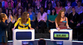 After watching the second episode of Whose Line?, I decided to view CW's Perfect Score, the game show that rewards contestants with cash and a date by trying to pick which of the 10 suitors they are most compatible with based on a compatibility test. The catch is each of the bachelors/bachelorettes have a dollar amount attached to them from $1 up to $50,000. The more compatible they are with the contestant, the more money they could win, and vice versa. Three elimination rounds are played and the contestants who finds the person who is more compatible with them, wins the money attached to the suitor and a date.