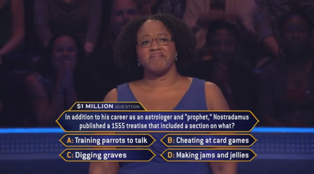 to answer a Million Dollar Question incorrectly. Although she lost $75,000 and